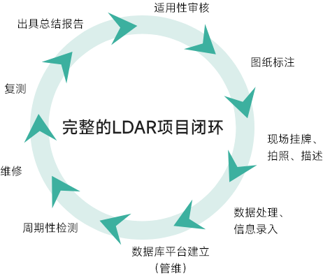 在傳統的(de)LDAR項目中,企業和(hé)第三方的(de)工作一(yī)直偏重于發現洩漏(即Leak Detection,LD),而對于洩漏點的(de)修複工作缺乏完整、規範、系統的(de)流程和(hé)方法。漢潔環境AR服務(數字化修複技術方案)提供完整、閉環、基于數據驅動的(de)工廠“零”洩漏解決方案。